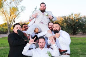 Never before has my wife and I experienced a wedding were a whole community gets together to help prepare for the big day. 8/18, the official wedding day for Talya and Melech who got married at the Tucson Hebrew academy. People came from far and wide to pitch in with cooking, cleaning, decorating and ect ect ect….. The fellas assembled the chuppah (the canopy that symbolizes the home the couple will build together and God’s presence at the wedding) as the ladies broke plates (which symbolize the seriousness of their commitment). The day was so busy that we had to take bride and groom formal photography on a separate day in front of the Jewish Community Center. Not only were we welcomed into this great community, we now consider Talya and Melech to be great friends.